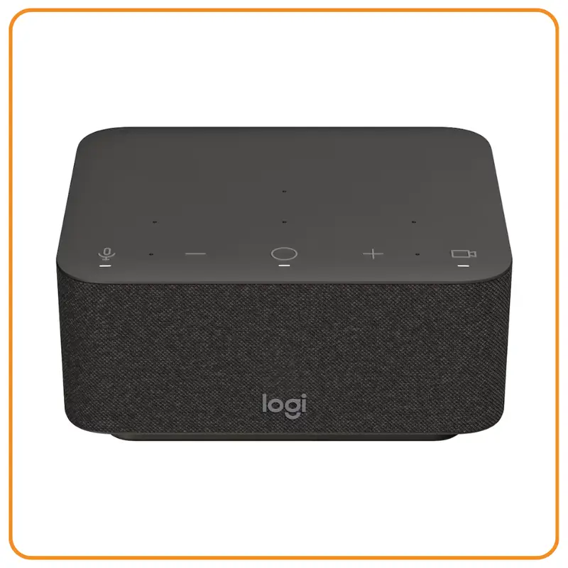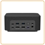 Docking station B2B todo-en-uno: conecta periféricos, carga la laptop y funciona como altavoz premium para reuniones.